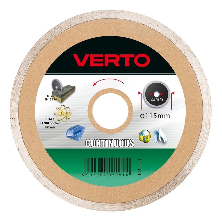 VERTO continuous diamond disc is designed for precise cutting of ceramics, like terracotta, gres, granite, marble. VERTO brand offers power tool and accessories assortment for all DIY enthusiasts.