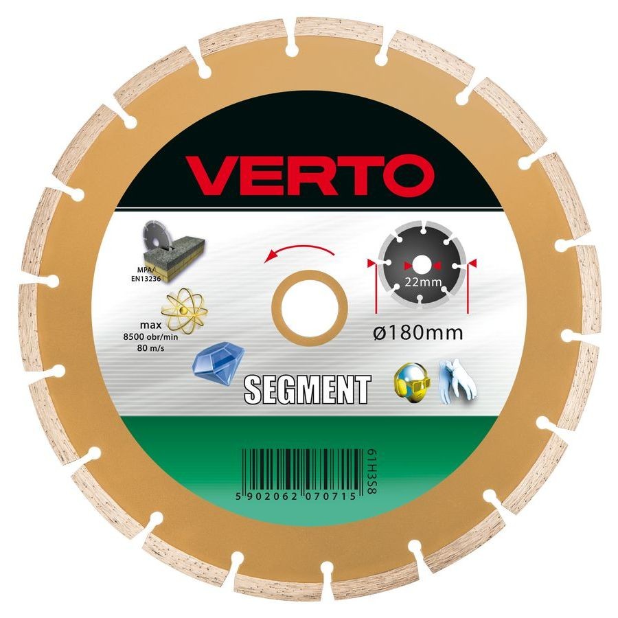 VERTO segmented diamond disc allows for efficient cutting concrete, reinforced concrete, marble, stone, brick etc. VERTO brand offers especially power tool accessories for all your DIY needs.