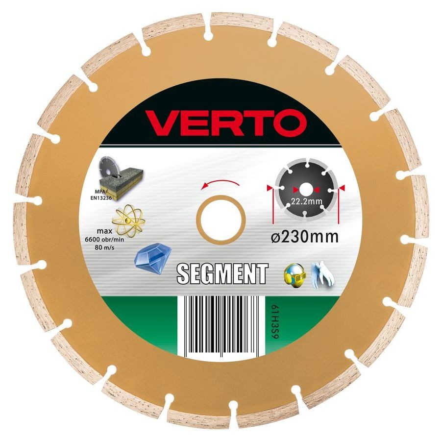 VERTO segmented diamond disc allows for efficient cutting concrete, reinforced concrete, marble, stone, brick etc. VERTO brand offers especially power tool accessories for all your DIY needs.