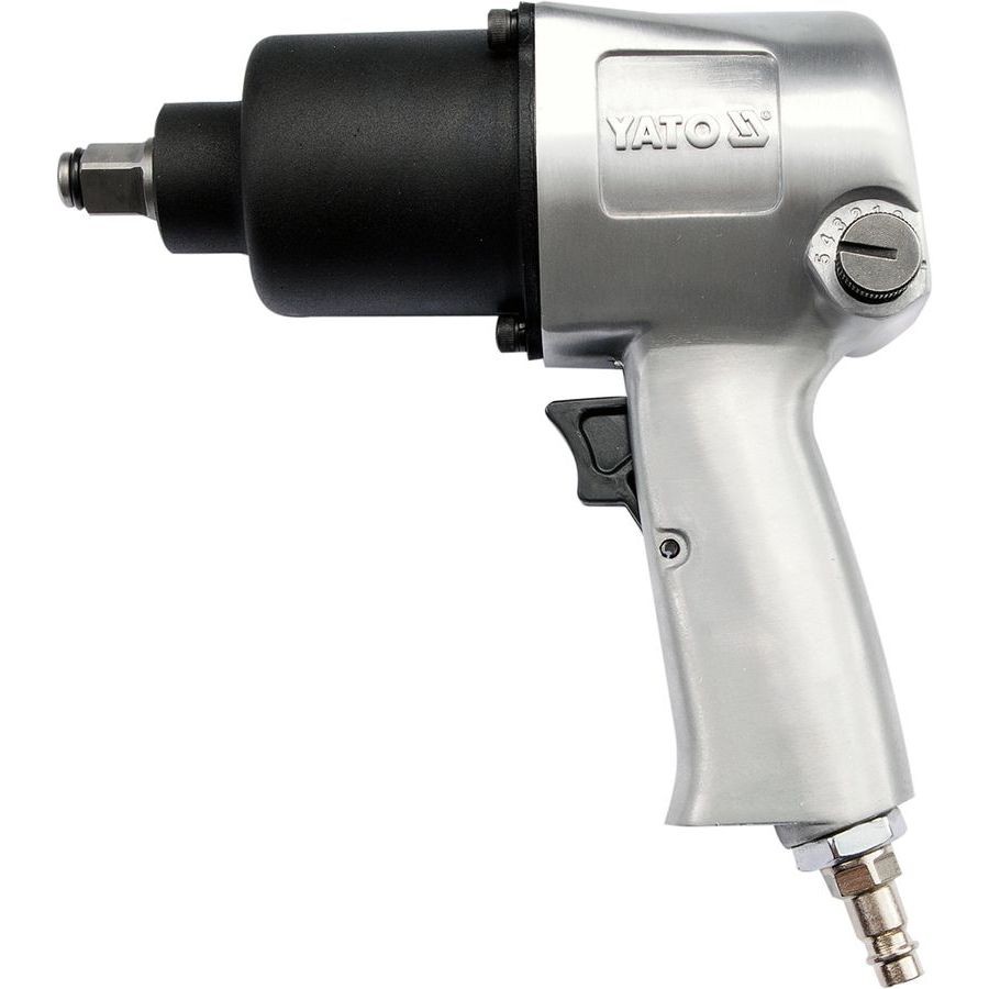 YATO Professional Air Twin Hammer Impact Wrench 1/2'' 550NM designed for professional usage in garages. Twin motor delivers 550NM of torque. Trigger at the back for speed regulation. The lightweight, yet durable body makes it only 1.9kg. Soft grip for more comfortable usage. Short design allows getting into confined spaces.
