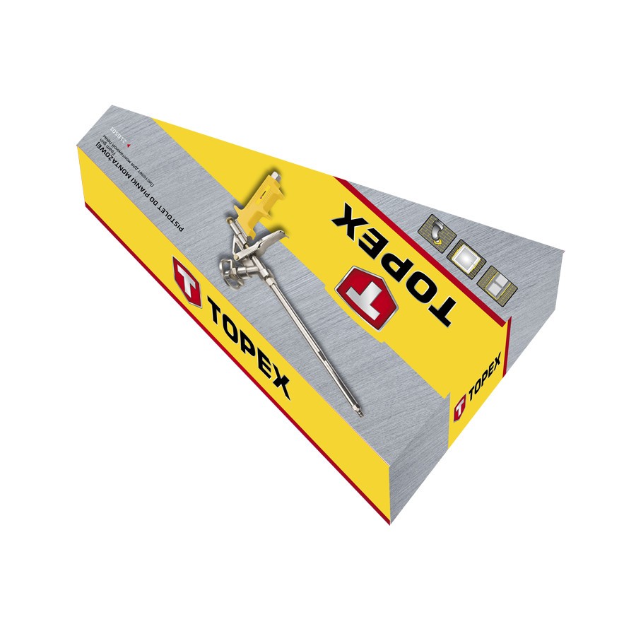 TOPEX expanding foam gun is used in renovation and finishing works. Ergonomic plastic handle fits well in hand for better work comfort. Foam flow adjustment allows to match tool working mode to the user`s needs. TOPEX brand is designed for DIY enthusiasts.