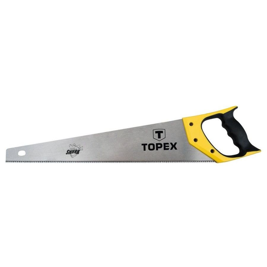 TOPEX Shark hand saw is made of hardened steel. Three side sharpened and hardened teeth result in significant decrease of cutting resistance and facilitate cutting wood along the rings. Efficient pitch of 7 teeth per inch makes work easier. Ergonomic, two material handle allows to guide the saw precisely, and anti slip coating prevents the tool from slipping off hands, thus ensuring high work comfort. TOPEX brand is designed for DIY enthusiasts.