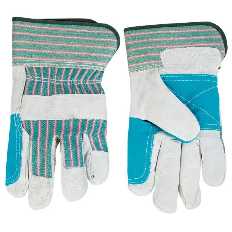 TOPEX Heavy-Duty Leather Palm Gauntlet sized 10.5". They provide hand protection against dirt, scratches, clavi and harmful conditions at work. They are made of grey cattle split with very high resistance to abrasions, tearing and punctures. CE mark is a safety warranty and proves that the product meets all European requirements. TOPEX brand is designed for DIY enthusiasts.