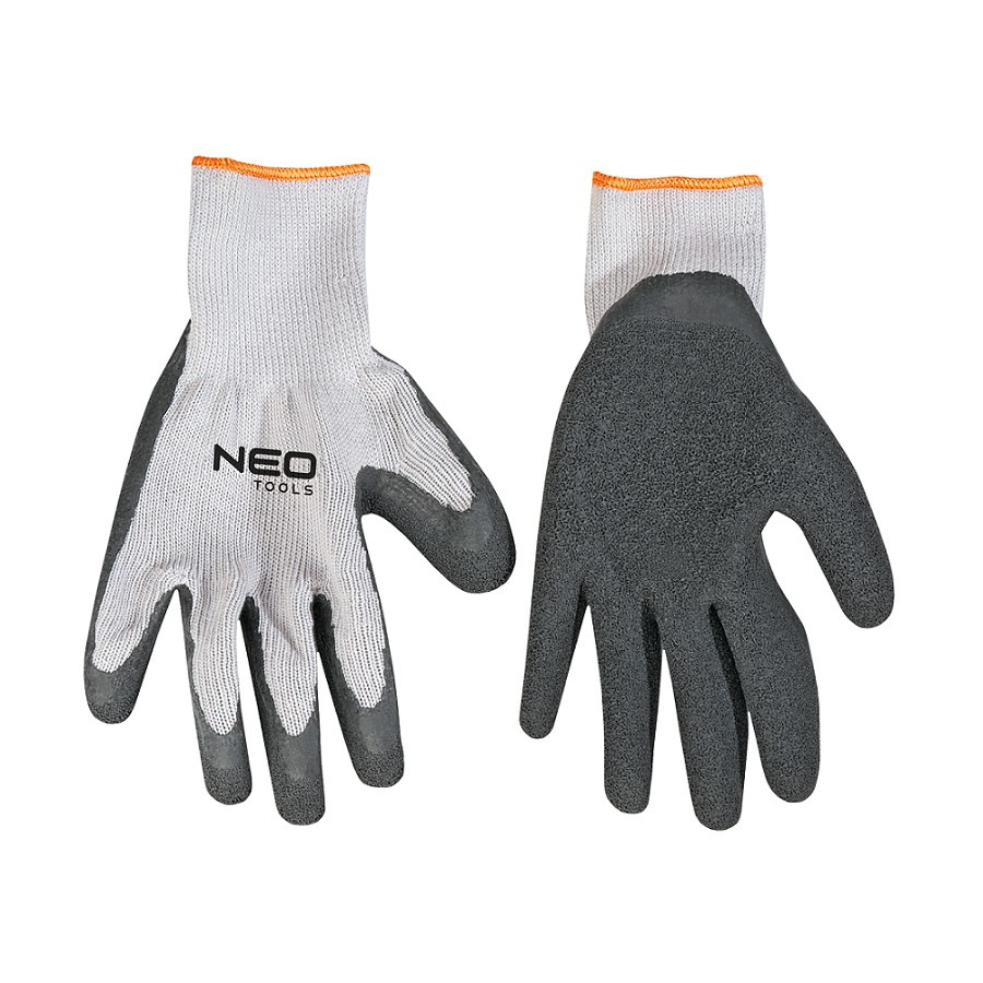 NEO working gloves provide hand protection against dirt, scratches and harmful conditions at work. They are made of high-quality cotton knitted fabric with latex coating. They feature high resistance to tear and puncture. Gloves provide comfort in use while preventing tools from slipping off hands. CE mark is a safety warranty and proves that the product meets all European requirements.