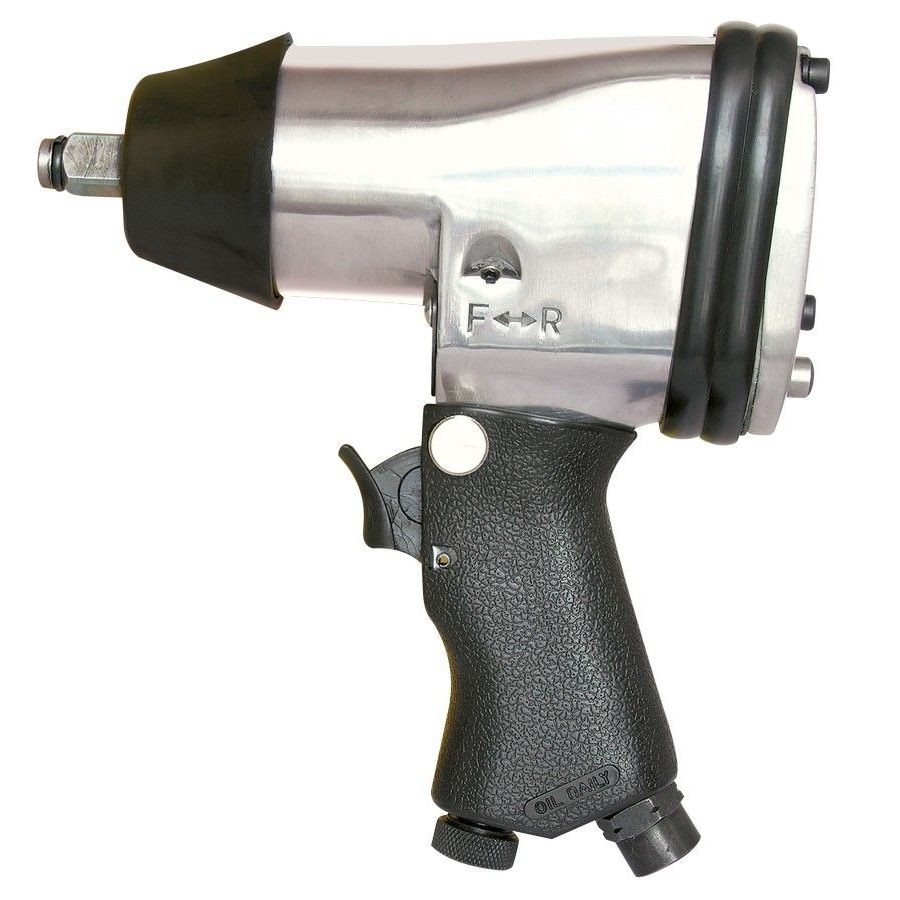 TOPEX Pneumatic Impact Wrench 1/2'' 314NM designed for DIY enthusiasts usage in garages. Twin motor delivers 550NM of torque. Trigger at the back for speed regulation. Soft grip for more comfortable usage. Short design allows getting into confined spaces. The tool features adjustable left/right rotation and non-freezing handle.