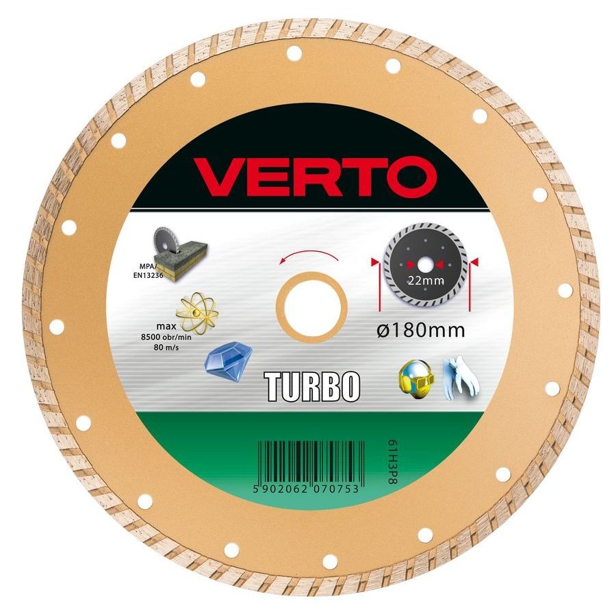 VERTO Turbo diamond disc allows for efficient cutting concrete, reinforced concrete, marble, stone, brick etc. VERTO brand offers power tool and accessories assortment for all DIY enthusiasts.