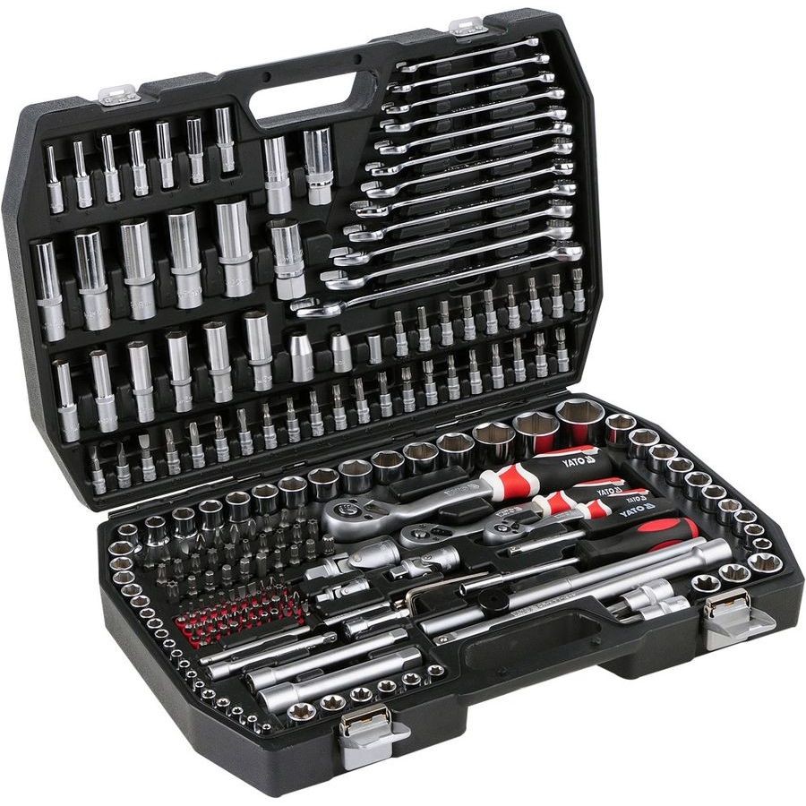 YATO Professional Ratchet Socket Set 1/4", 3/8" & 1/2" 216 pieces all made from the highest quality vanadium steel. The ratchets have 72 teeth and are made to perform heavy duty jobs. The case is made from a very durable material for safe transportation. Superior quality ratchet mechanism with soft grip handle for easier manoeuvring.