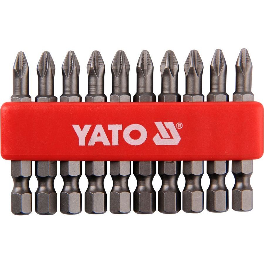 YATO Professional PH2 non-slip screwdriver bit set of 10. This set is designed for unscrewing damaged screws due to its highest quality hardened steels and non-slip system. The bits are 50mm long and fit all standard bit holders.