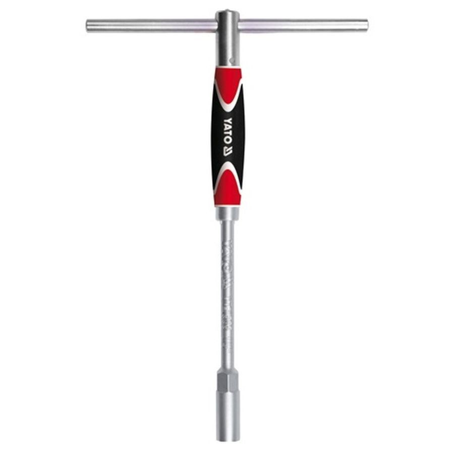 YATO T-Type Socket Wrench 8mm, 310mm long, made from a high-quality vanadium steel. This tool is an essential equipment in any garage. It has a soft grip handle, which is 360* rotatable with a locking feature. Its length allows operating in difficult to reach areas.